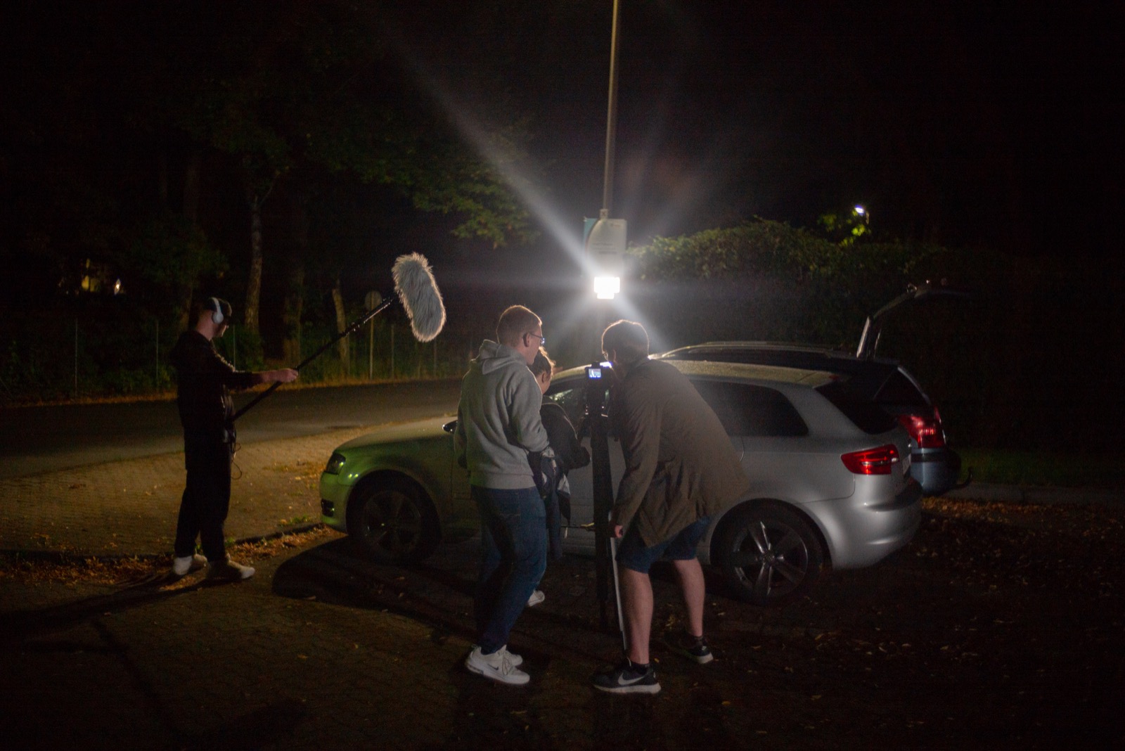 Es kamen 4 professionelle Schauspieler zum Einsatz, Ich war Kameramann, Tonmann war ein junger Erwachsener namens Falco, ein BTS Assistenzmann namens Sebastian war auch dabei, und natürlich der Regisseur selbst.